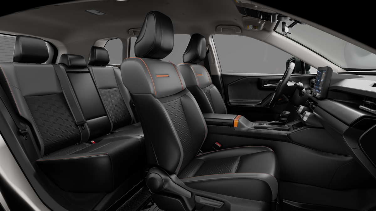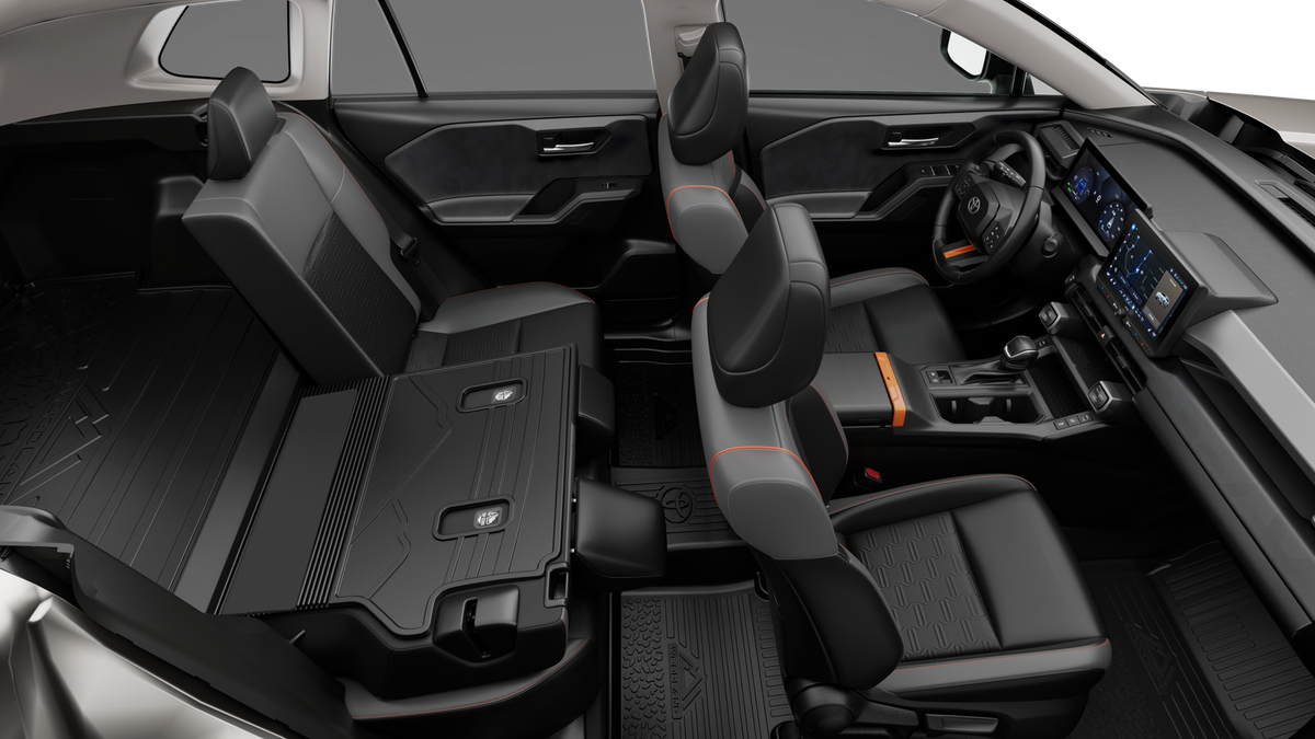 • 60/40 split reclining fold-flat rear seat with center armrest and cup holders