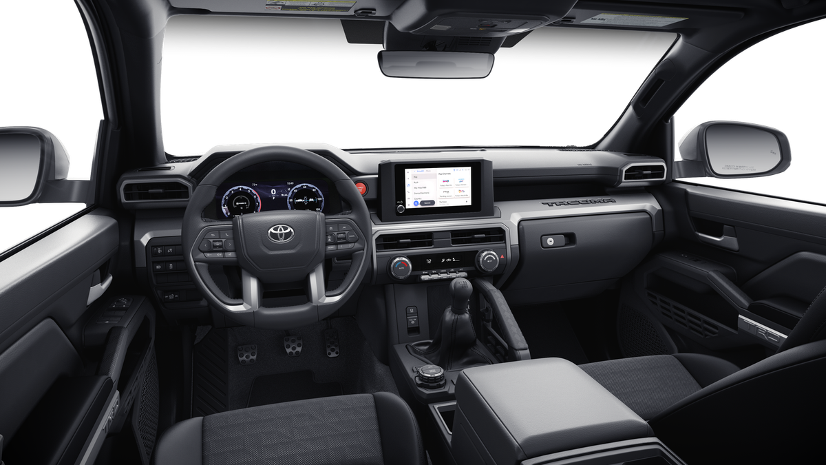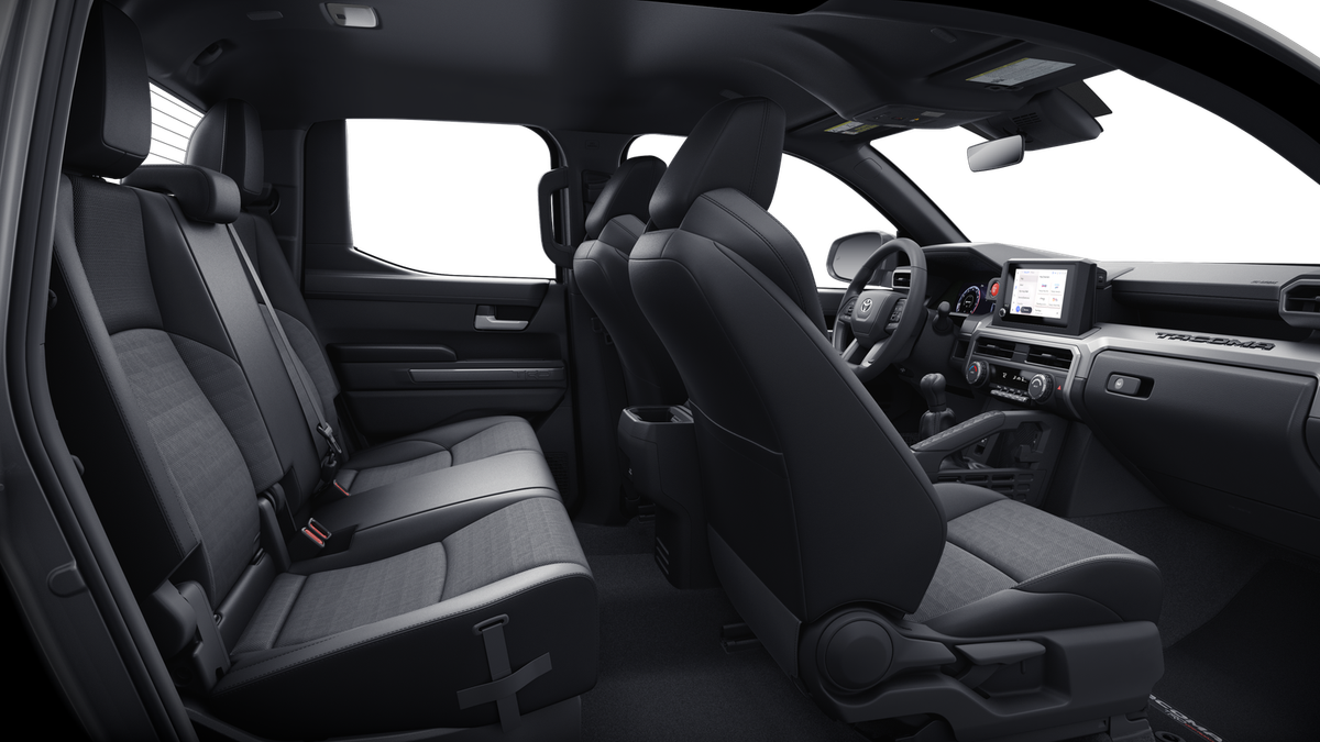 TRD Off-Road Premium Package (M/T) — includes SofTex®-trimmed seats with heated and ventilated 8-way power-adjustable front seats, leather-trimmed heated steering wheel, 14-in. Toyota Audio Multimedia display, Multi-Terrain Monitor (MTM), JBL® 30 Premium Audio with JBL® FLEX 31 portable speaker, moonroof, Qi-compatible wireless charging, 46 dual zone automatic climate control, Front and Rear Parking Assist Sonar, 58 prewired auxiliary switches, digital rearview mirror, Integrated Trailer Brake Controller (ITBC), 29 power open/close tailgate, 45 61 Digital Key 16 capability, 400W/120V 1 AC power inverter, and power horizontal rear window