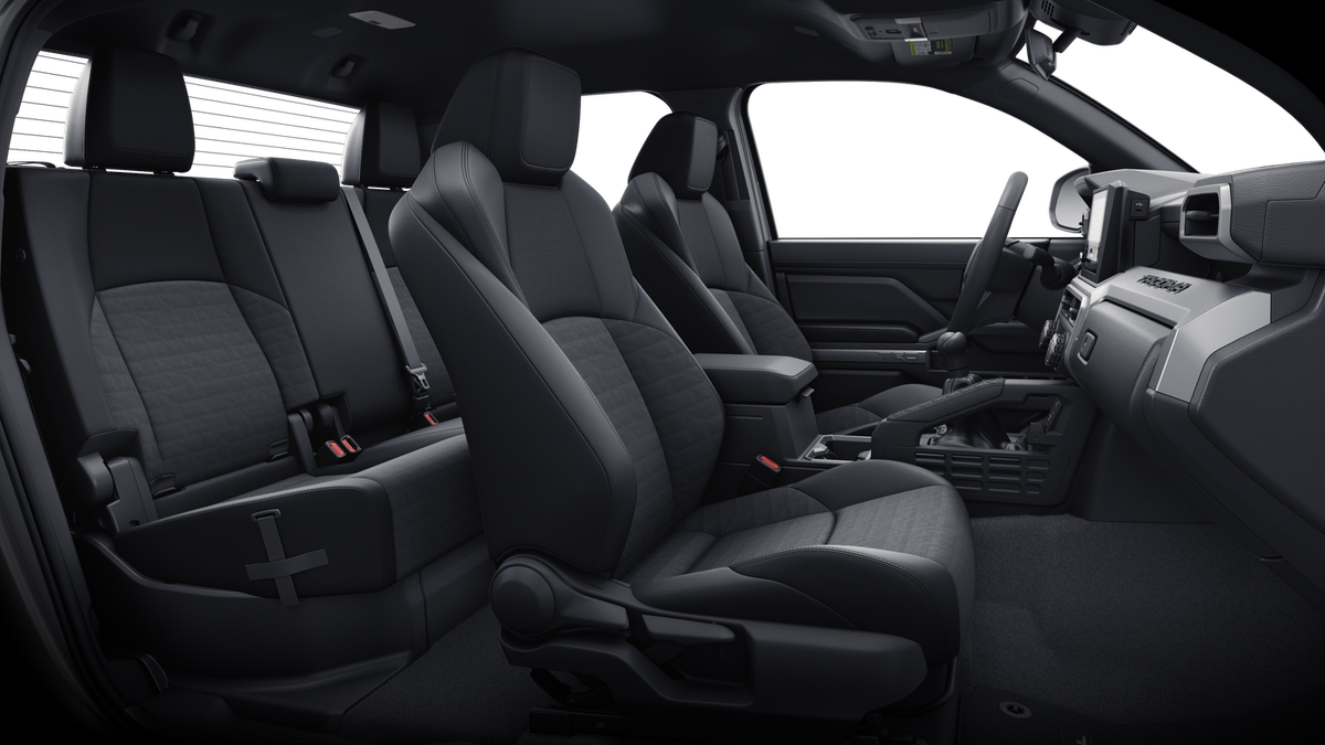 • Fabric-trimmed seats; 6-way manually adjustable driver and front passenger seats with 2-way power-adjustable lumbar support on driver's seat only
